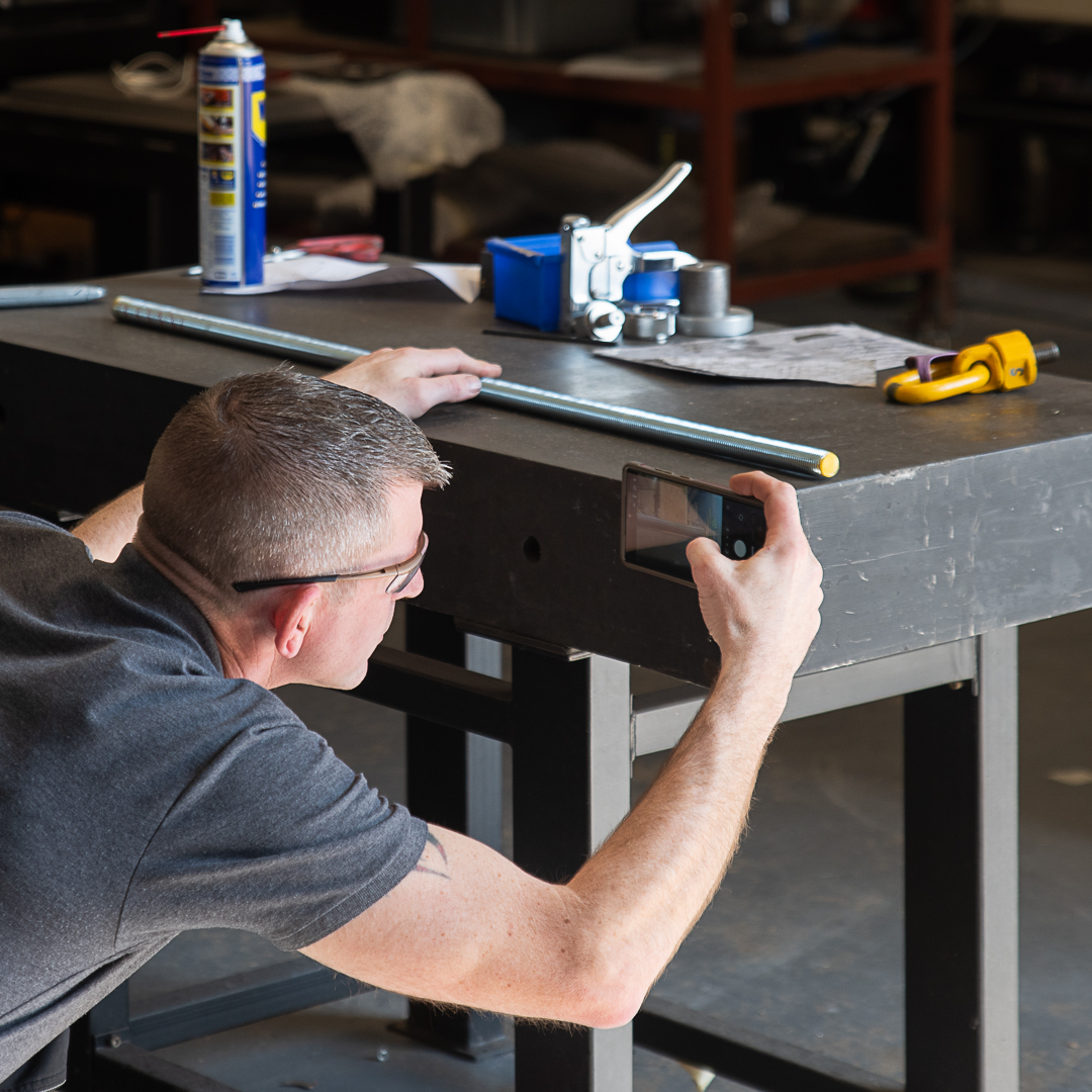 Checking the straightness of threaded rod on a plumb granite surface